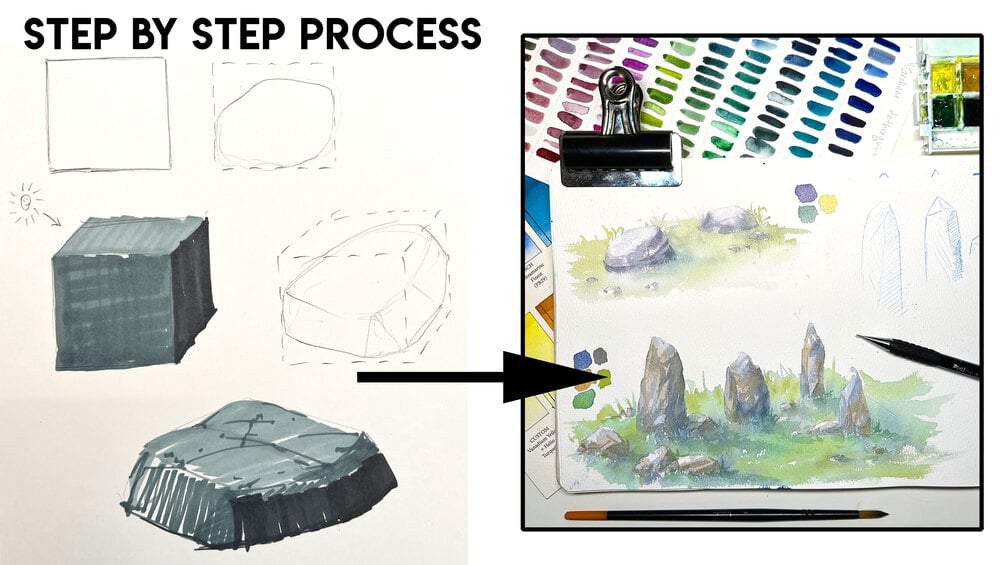 - Lesson 3.3 Demo #1 - Watercolor Rocks